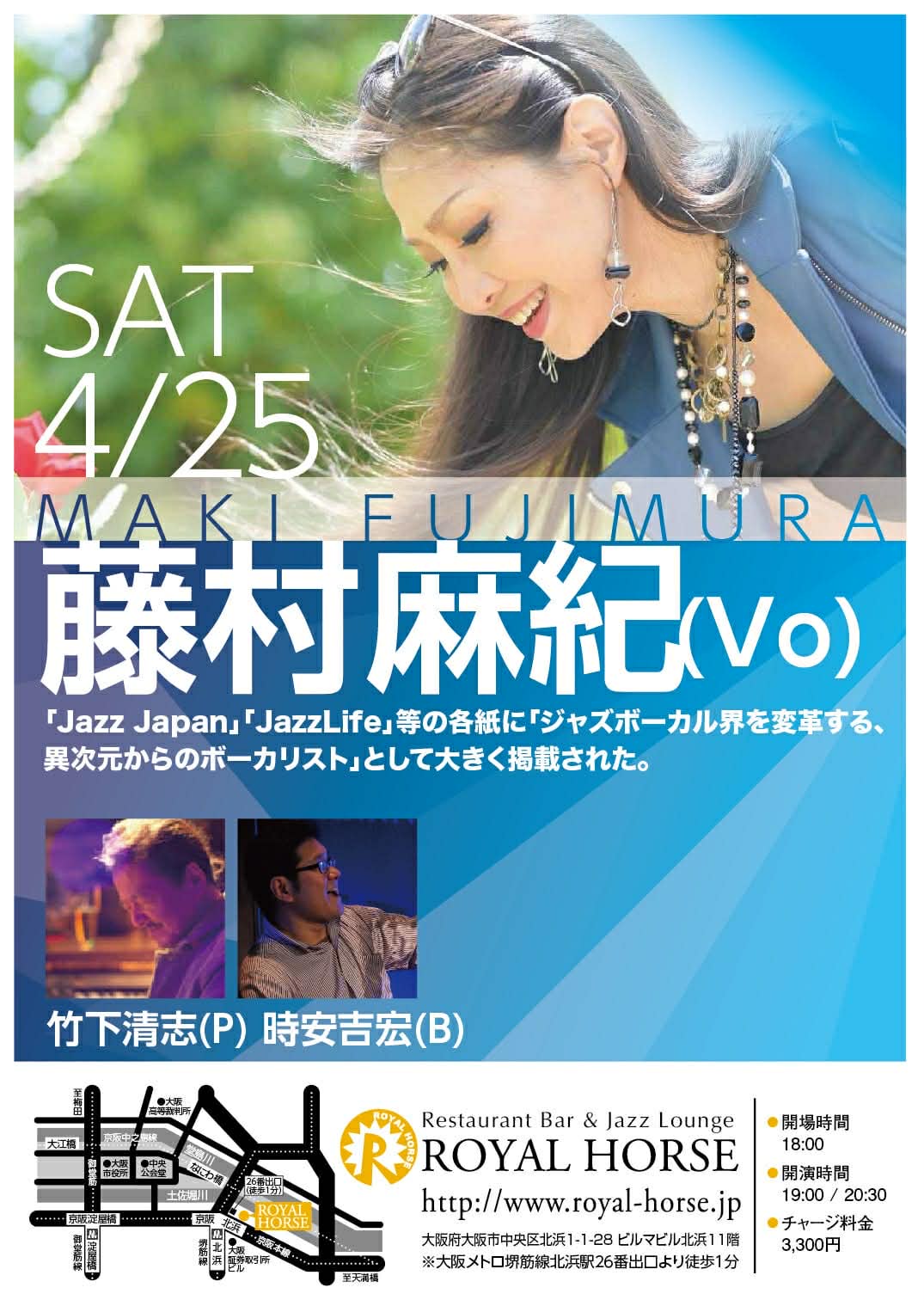 藤村麻紀(V)、フィリップ・ストレンジ(P)、荒玉哲郎(B)、松田順司(Dr) 19:00〜予定 ドナリー 〒557-0002 大阪府大阪市西成区太子1丁目4−2 太子中央ビル 203号